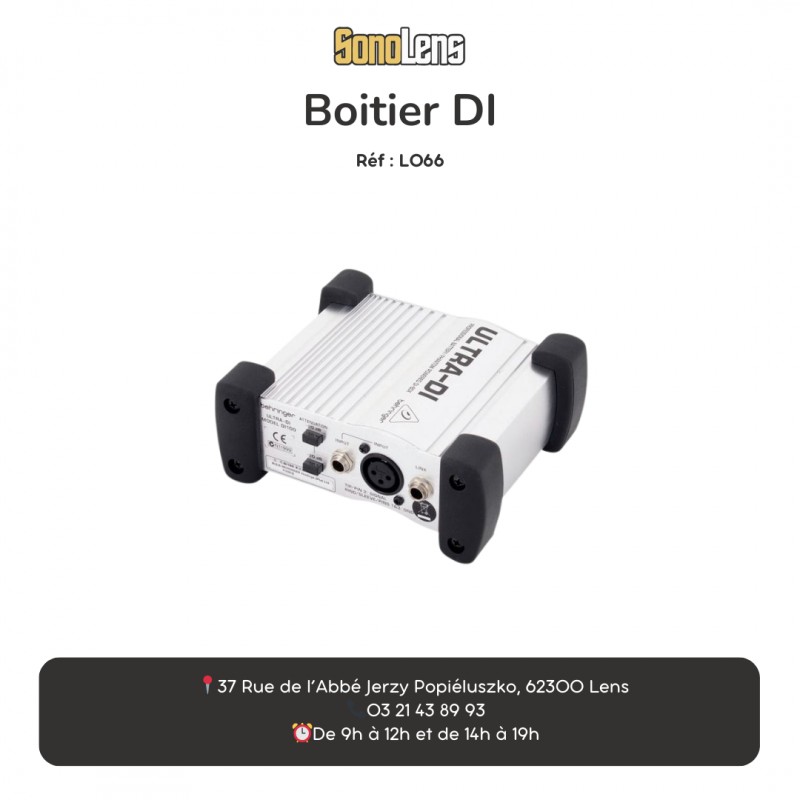 Location Boitier DI : Pour brancher un instrument tel qu'une guitare ou un clavier à un système de sonorisation, comme une enceinte ou une table de mixage.
