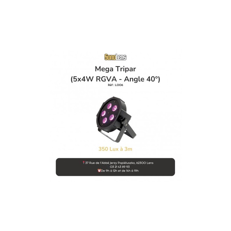 Location Mega Tripar : (5x4W RGVA - Angle 40°), 350 Lux à 3m