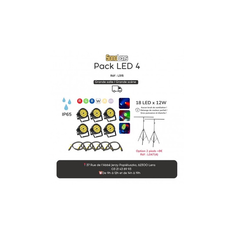 Location Pack LED 4 pour grande scène. Pack prêt à l'emploi, câblage inclus