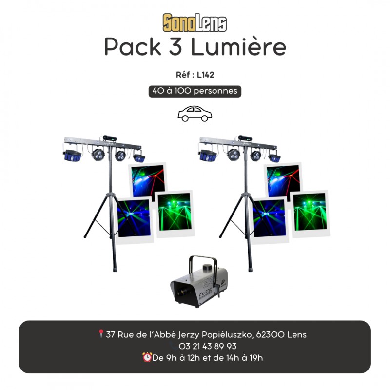 Location Pack Jeux de Lumières 3 pour 40 à 100 personnes. Câblage inclus, prêt à l'emploi.