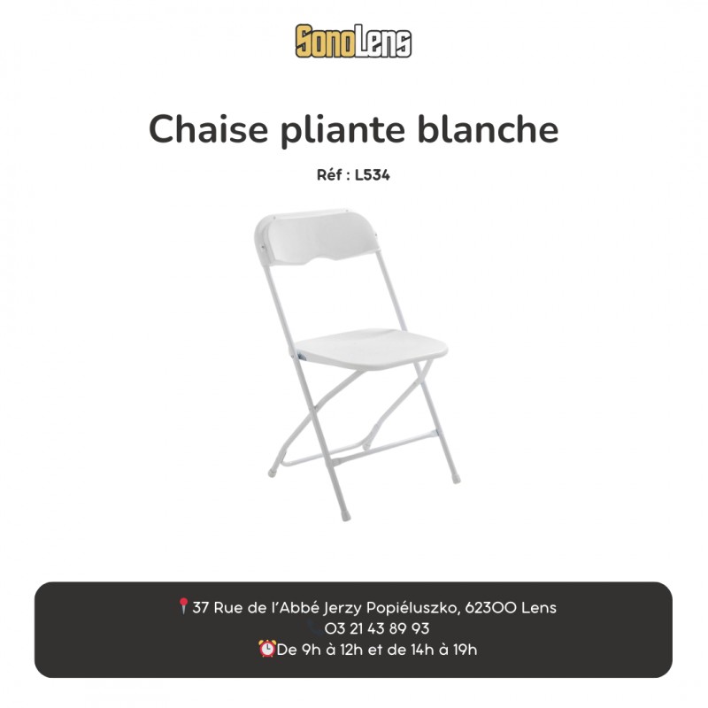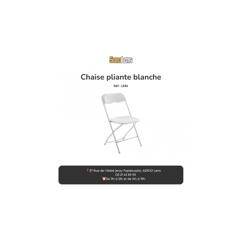Chaise pliable adaptée à une utilisation extérieure ou intérieure. Idéal pour tous vos événements : mariage, garden party, conférence, concert ou toute autre réception. Cette chaise est à associer à nos tables pliantes !