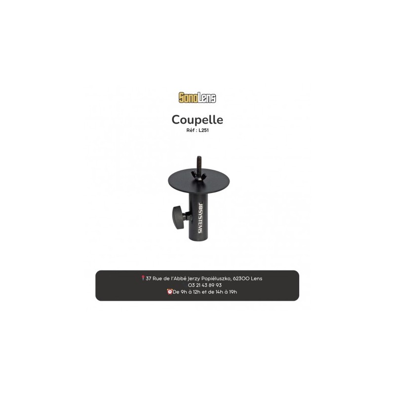 Coupelle CO12. Permet de mettre un projecteur (poursuite, PAR, jeux de lumière) sur le haut d'un pied d'enceinte.