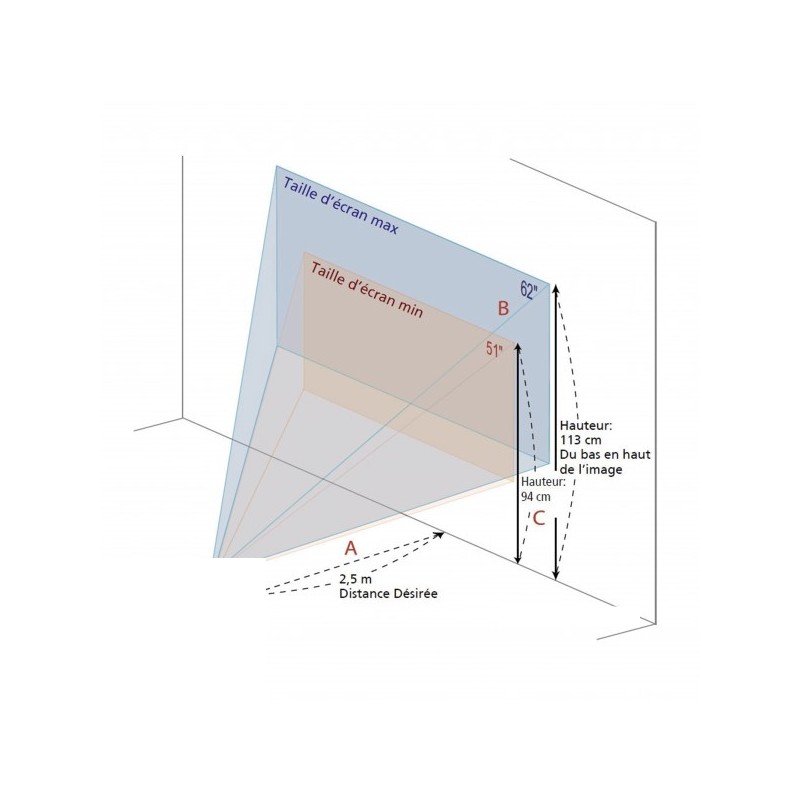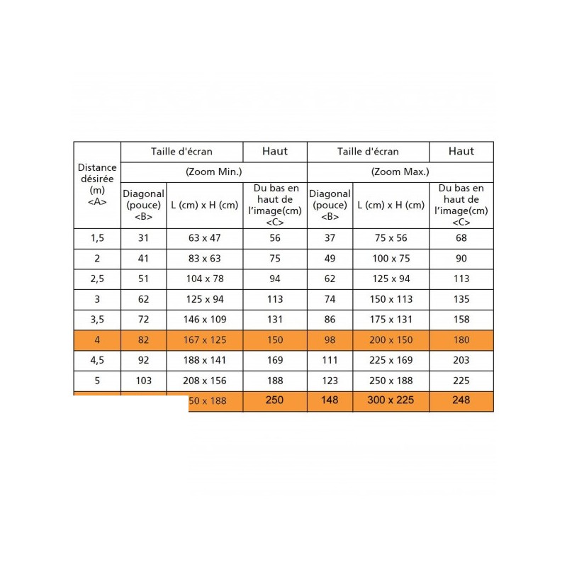 - Taille de l'image diagonale : 78,7 cm (31") à 762 cm (300")